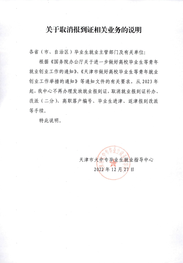 关于取消报到证相关业务的说明