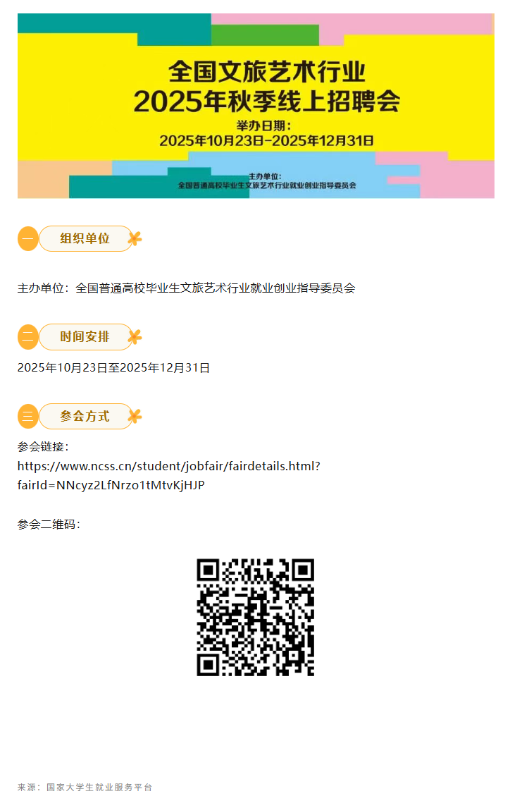 【就业直通车】24365招聘: 全国文旅艺术行业2025年秋季线上招聘会