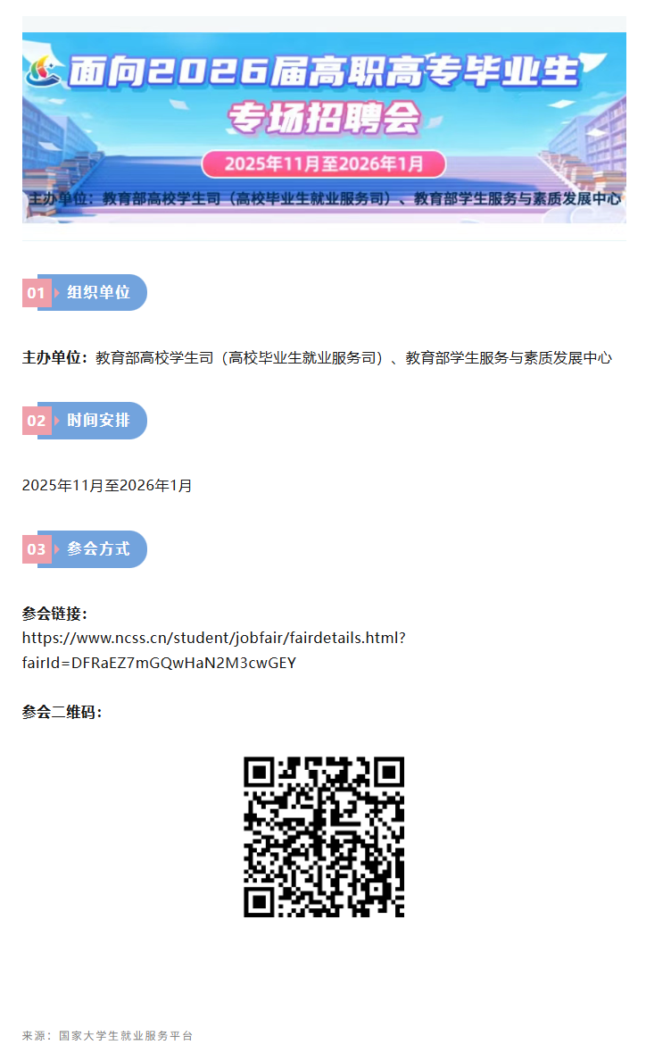 【就业直通车】24365招聘:面向2026届高职高专毕业生专场招聘会