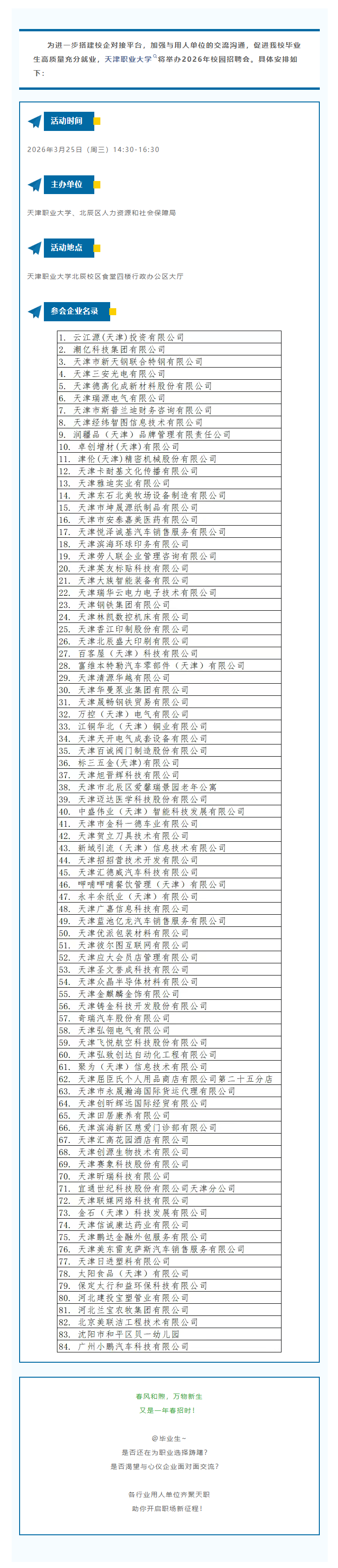 【招聘会预告】天津职业大学2026年校园招聘会预告