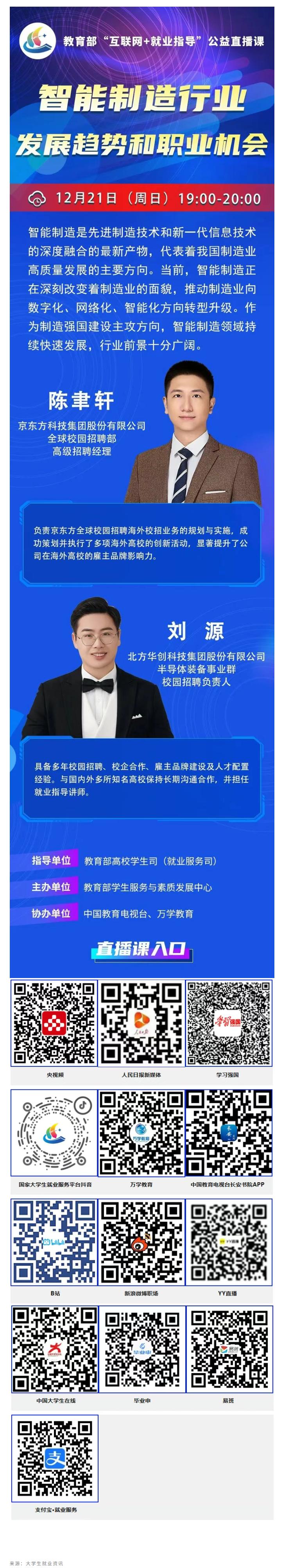 【课程预告】教育部“互联网+就业指导”公益直播课:智能制造行业发展趋势和职业机会