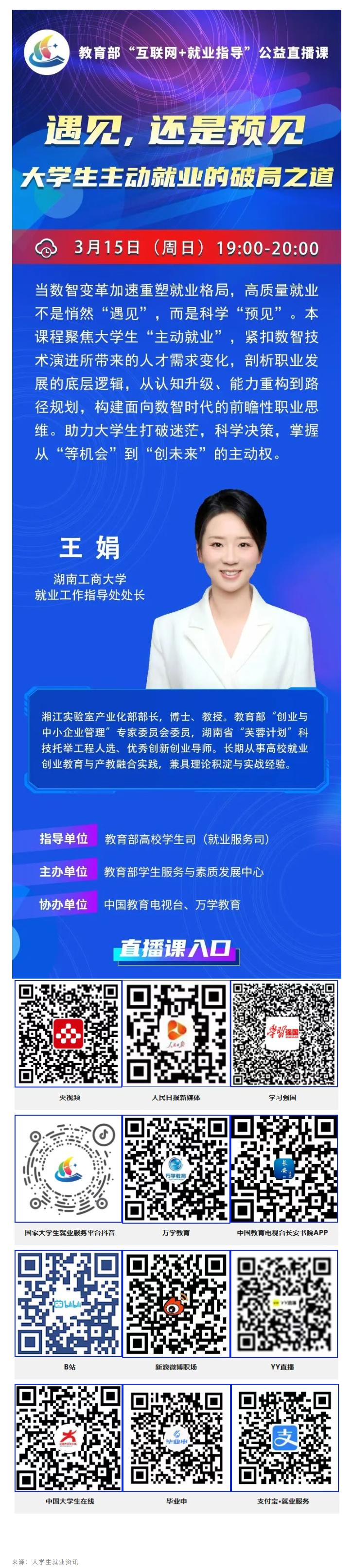 【课程预告】教育部“互联网+就业指导”公益直播课:遇见,还是预见——大学生主动就业的破局之道